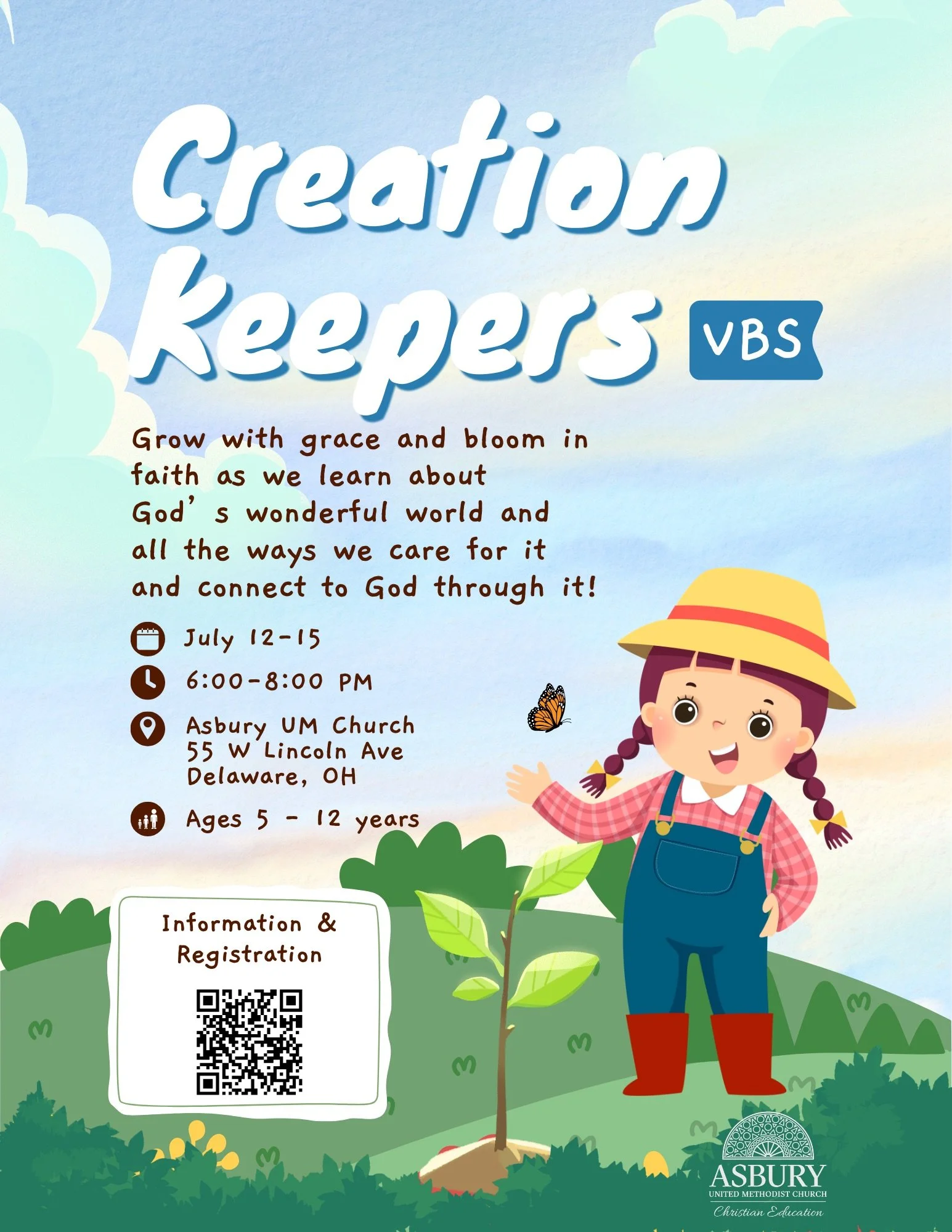Our 2026 VBS program will run from July 12th through July 15th, 6PM to 8PM each evening. The program centers on caring for God’s creation. Rooted in Genesis 1, children will explore what it means to be faithful stewards of the earth through hands-on gardening, learning about pollinators, nature exploration, interactive Scripture lessons, games, and creative activities. As they plant seeds and dig in the dirt, they’ll discover how caring for creation is part of living out our faith.