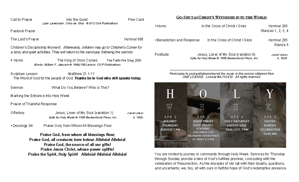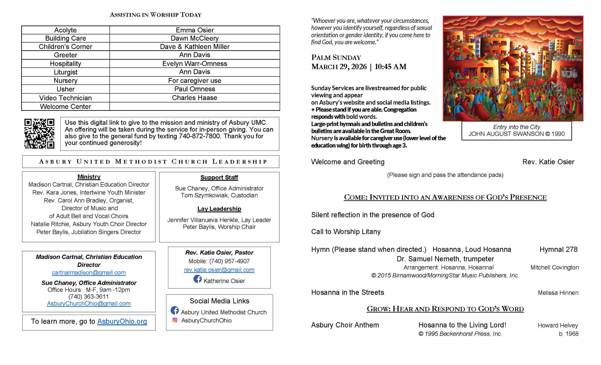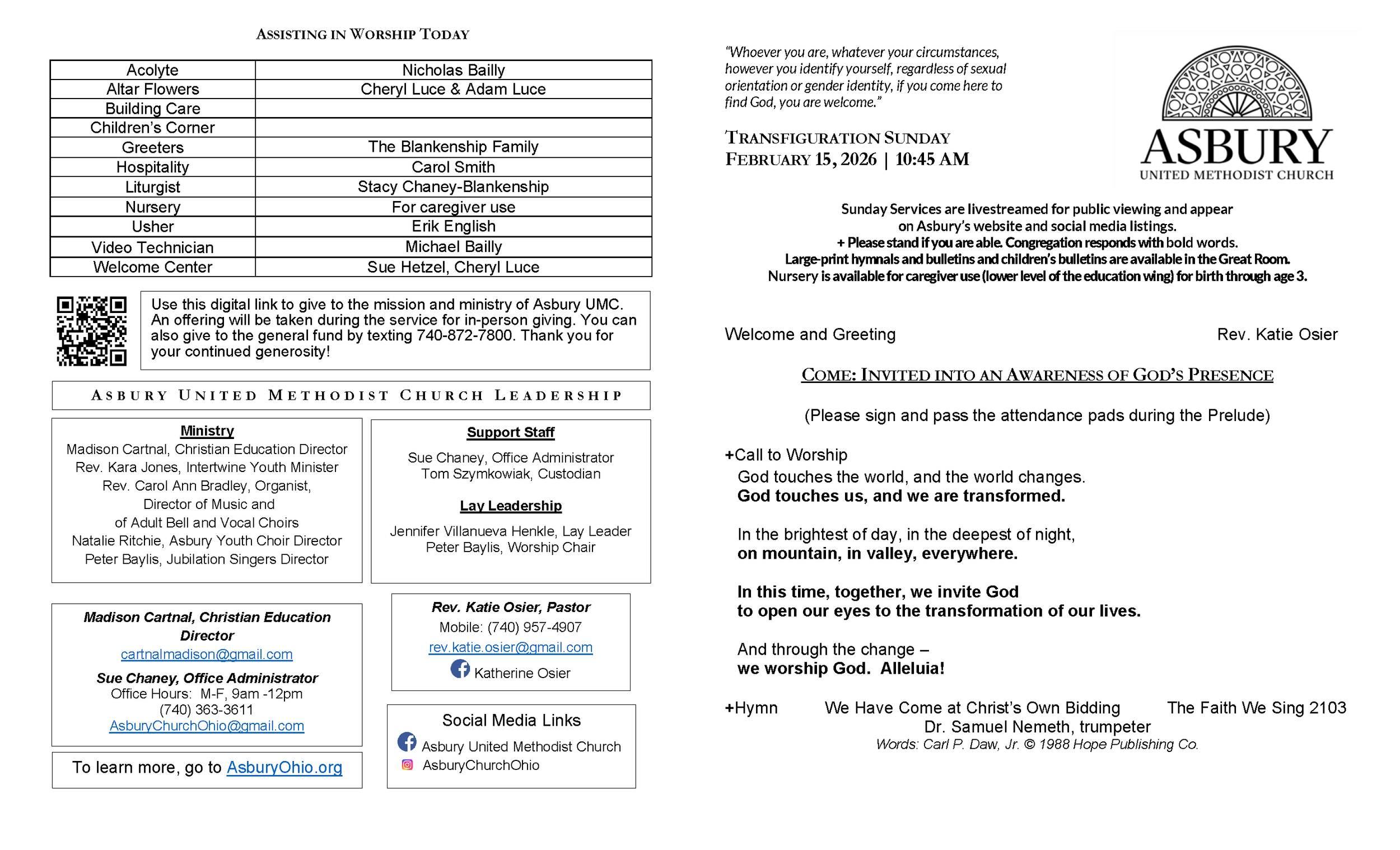 Bulletins and other helpful ways for you to participate in the mission and ministry of Asbury UMC are listed below. Thank you for connecting to the family of Asbury United Methodist Church.